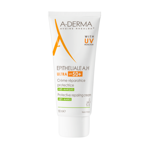 Crema 2 în 1 SPF50+.EPITHELIALE AH ULTRA ajută la repararea pielii fragilizate și oferă o protecție solară foarte ridicată SPF 50+ cu efect dublu împotriva cicatricilor și a petelor pigmentare. Formula sa conține un complex reparator brevetat* din 3 ingrediente active numit Cicahyalumide®, compus din dipeptide, acid hialuronic și extract din plantule de ovăz Rhealba®. Liana peruviană este, de asemenea, folosită pentru proprietățile sale ultracalmante asupra senzațiilor neplăcute ale pielii. Pentru a asigura o toleranță optimă în timpul utilizării, sistemul său fotoprotector conține doar 4 filtre cu o concentrație optimizată care rămân la suprafața pielii chiar și atunci când aceasta este fragilizată.